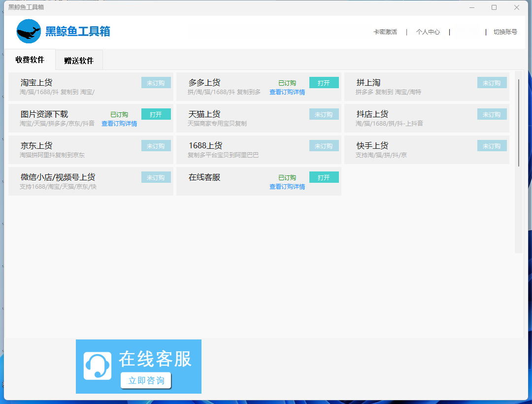 上一篇:黑鲸鱼工具箱商品复制卡密淘宝天猫多多上货软件